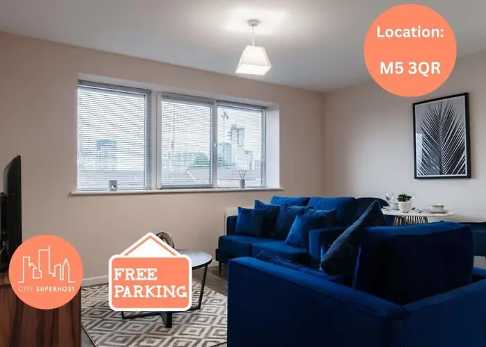 Free Parking Media-City By City Superhost ferielejlighed ligger næsten 2 km fra Manchester Katedral. Denne indkvartering består af 1 soveværelser, 1 badeværelser og et udstyret køkken.