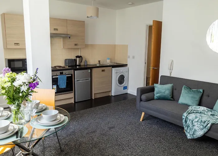 Trafford Town Hall ligger 100 meter fra denne ferielejlighed, mens The Point ligger i nærheden. Denne ferielejlighed måler 30 m² og har 1 soveværelser, 1 badeværelser og et udstyret køkken.