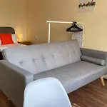 Studio With Great Transport Links To City Centre comprises a seating area featuring a sofa set and a writing table, and modern comforts like a flat-screen TV with satellite channels. Offering a separate toilet, a bath, and a shower, a bathroom comes with hairdryers and towels.