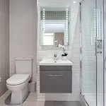 The Manchester property includes a bathroom with a washing machine. Bathrooms also feature a hair dryer and bath sheets for added comfort.