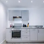To enhance your comfort, Charming Salford, Staycation, Wifi, Sleeps 5 apartment features an equipped kitchen with a fridge, an oven, and glassware provided.