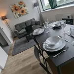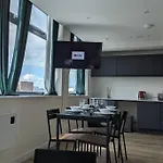 Lovely 1Br Penthouse Near Mcr Stadiums apartment offers a living room and a kitchen, as well as comforts like a washing machine. The accommodation features a bathroom with a hair dryer and bath sheets. Furthermore, a separate toilet, a shower, and a washing machine is available.