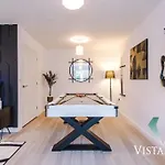At the 3-bedroom Modern 3 Bed House In Manchester With Pool Table And Driveway Parking By Vista Stays Short Lets, guests can enjoy ping pong and pool as well as a location only 6 minutes' stroll from The Monastery Manchester. Located 2.9 km from The Catholic Church of the Holy Name of Jesus, the villa provides Wi-Fi and parking.