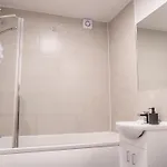 To ensure your comfort, a bathtub, a separate toilet, and a shower are provided at Stunning Modern 2 Bed Flat, With Parking, Near Town Apartment. Moreover, there are a hairdryer and bath sheets as well.