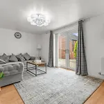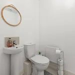 Offrant une vue sur le jardin, New Modern Townhouse Holiday Home Free Parking dispose d'un équipement de repassage, d'une TV et d'une TV à écran plat avec des chaînes satellite. Les équipements de salle de bains comprennent les toilettes séparées, la baignoire et la douche, ainsi que le sèche-cheveux et les draps de bain.