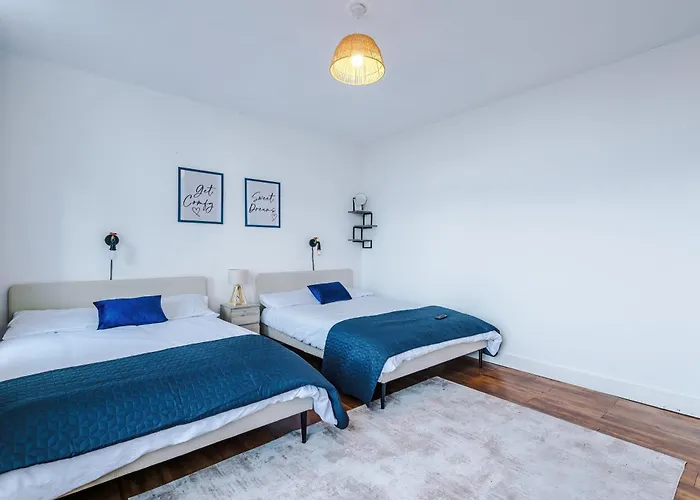 דירת מנצ'סטר 2Br City Heights Apt Sleeps 7 Parking & Wifi מאפשרת גישה ישירה אל גשר בלקפריירס וכוללת נופים של רחוב. קינג סטריט מנצ'סטר שוכן במרחק של 0.7 ק"מ על דירה, בזמן שBBC Manchester זה כ-3.8 ק"מ משם.