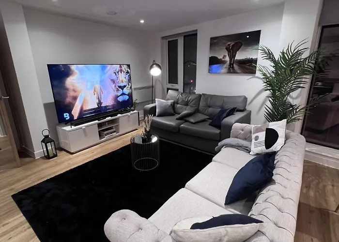 Az apartman a vendégek számára olyan önellátási lehetőségeket kínál, mint a kávé/tea készítő, hűtő és üvegáru. A Manchester repülőtérre autóval 21 perc alatt eljuthat.