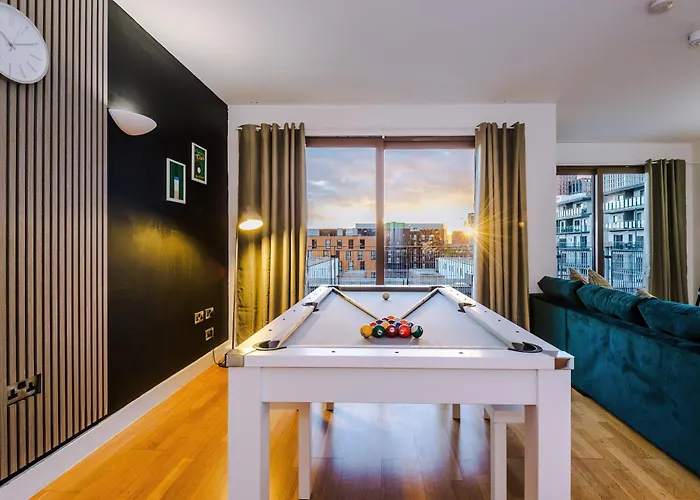 Per goderti la tua vacanza a Manchester, alloggia in Sleeps 8, Duplex Apartment, Pool Table, Balcony X2, Long Term Disc, Perfect For Groups Manchester, di 120 m², che si trova a circa 25 minuti a piedi da Gay Village e a 2 km dalla Chiesa di Sant'Anna. L'appartamento offre una vista sulla città e c'è anche una terrazza.