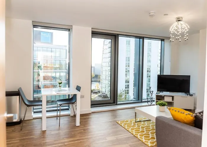ザ・ロ-リ-から徒歩で12分以内で行けるソルフォ-ド地区にある11m^2のThe Exclusiveアパ-トは2人の顧客を収容することができます. 衛星放送チャンネルの薄型テレビ,ダイニングエリアと座席のある宿泊施設を提供しています.