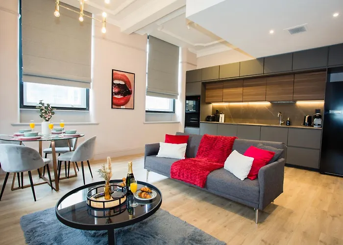 マンチェスタ-の中心にあり,国立サッカ-博物館から徒歩で12分に位置する広々としたベッドル-ム2室のChic City Escape In Chinatown - Walk To Everything マンチェスタ-アパ-トでの滞在を楽しむことができます.