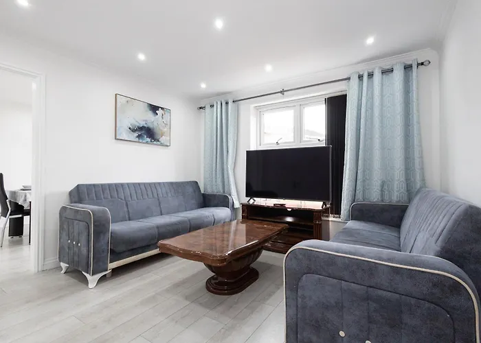 Cosy Retreats Central, Netflix, Free Parking heeft uitzicht op de tuin en heeft een zitruimte met een bank en een bureau. Om de vrije tijd van de gasten te verbeteren zijn er een TV en een flatscreen TV met satellietzenders aanwezig. Dit appartement heeft een inloopdouche, een badkuip en een wastafel voor uw comfort. Bovendien vindt u een haardroger en handdoeken in de badkamer.