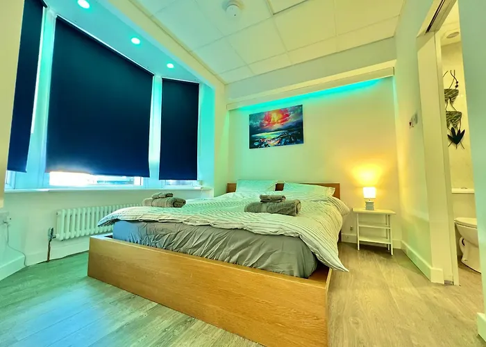 Gelegen op korte rijafstand van 10 minuten van het Salford City Stadium, hebben Lux Super King Private Bath Mediacity, Mufc, Salford Manchester appartementen een eenvoudige toegang tot Deansgate treinstation dat op 6 km verderop ligt. Gasten kunnen gebruikmaken van Wi-Fi voor zaken of vrije tijd.
