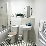 De accommodatie heeft 2 slaapkamers. Chic 2-Bed Flat - Coop Live & Ethiad Appartement komt met 2 badkamers met een badkuip en een douche. Bovendien zijn er ook een haardroger en badlakens.
