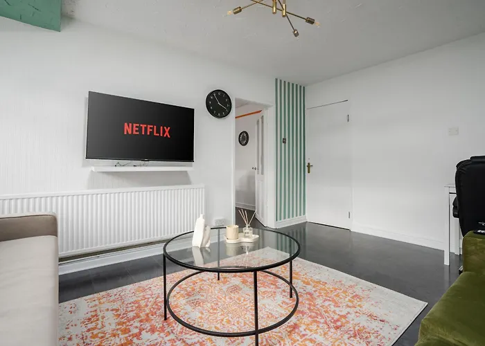 Deze 2-slaapkamer The Jade - Pool Table - Man Utd - City Centre - 4Bd Manchester villa ligt op ongeveer 7 minuten te voet van Z-arts en biedt toegang tot verschillende attracties in de omgeving.