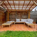 Het binnendecor biedt uitzicht op de tuin en is voorzien van breedbandinternet en een flatscreen TV met satellietzenders. Er zijn 2 badkamers met een apart toilet, een badkuip en een douche. De badkamers hebben ook een haardroger, toiletartikelen voor gasten en badlakens voor extra comfort.