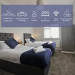 Luxury - Close To Centre - Free Parking - 4 Beds z miejscem do siedzenia jest wyposażony w sofę oraz nowoczesne udogodnienia, takie jak telewizja satelitarna i telewizja wielokanałowa. W pokojach zapewniono czujnik dymu. Obiekt noclegowy obejmuje 2 sypialnie. W 2 łazienkach znajduje się kabina prysznicowa walk-in i oddzielna toaleta, a także nowoczesne udogodnienia, takie jak suszarka do włosów i ręczniki kąpielowe.