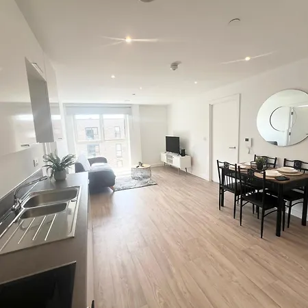 Zlokalizowany w dzielnicy Salford Lovely 2 Bedroom Apartment o powierzchni 80 m^2 oferuje zakwaterowanie prawie 25 min spacerem od takich atrakcji kulturalnych, jak Muzeum Nauki i Przemysłu.