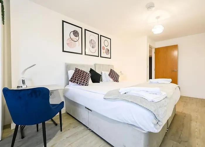 Stylish & Spacious Salford Quays One Bedroom High Floor Apartment With Balcony расположены в районе Салфорд, всего в 3 км от таких культурных достопримечательностей, как Национальный музей футбола. Помимо частной парковки, здесь предлагают услуги консьержа.
